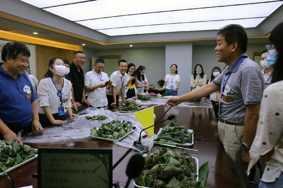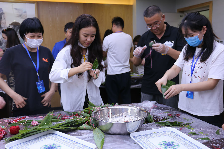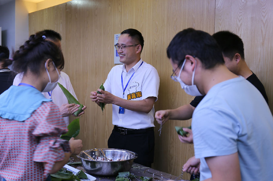 “裹”然出“粽”,乐在其中。一粒粒晶莹的糯米一片片清香的粽叶,在一双双巧手下变成了一只只诱人的粽子,一边包粽子一边抢答端午节小知识,整个活动现场其乐融融。不一会儿,一个个粽子就摆满了桌子,“美食家”评委们现场评出了一、二、三等奖及参与奖,比赛在同事们的欢声笑语中圆满结束。参加此次比赛的员工纷纷表示:“和同事们一起在包粽子比赛中度过端午节,在紧张的工作之余放松了心情,也感受到了公司对我们员工的人文关怀。”