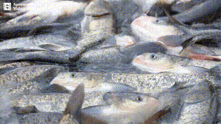 被捕捞上来的鱼儿充满活力