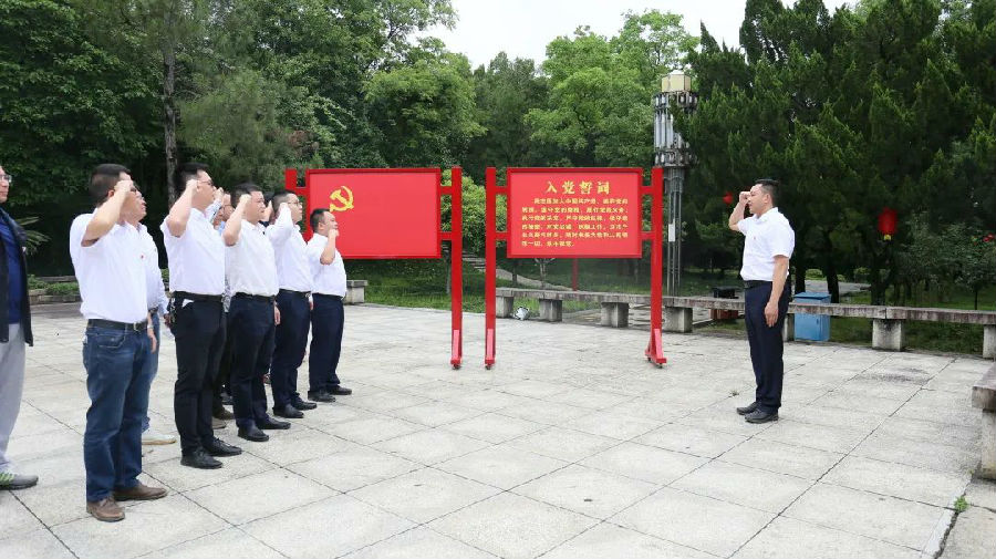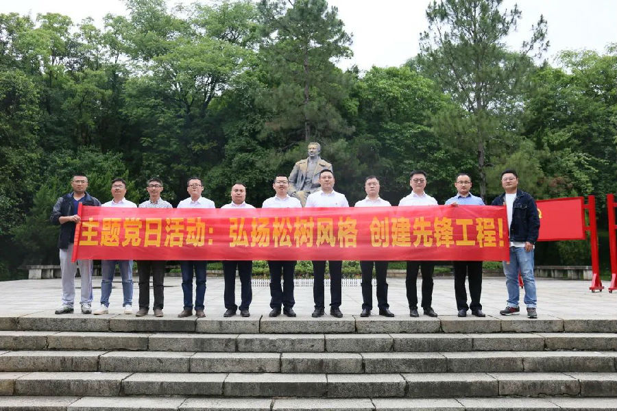弘扬松树风格,创建先锋工程。会后,联合党支部组织全体党员赴祁阳县陶铸纪念馆开展“弘扬松树风格,创建先锋工程”主题党日活动。在陶铸铜像前,全体党员紧握右拳,重温入党誓词。李双程指出,本次主题党日活动是传承陶铸精神,牢记入党誓词,团结实干,跨越争先,加快建设项目建设的思想保证和政治动力。全体同志要像松树一样具有坚强的意志和崇高的品质,充分发挥党建引领作用,以高质量党建引领高质量发展,努力推进支部建设与安全、质量、效率同频共振,推动项目在冲刺“630全容量并网”中跑出加速度。