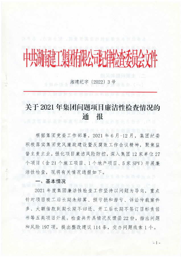 关于2021年集团问题项目廉洁性检查情况的 通 报